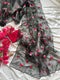• Maroon Pink Designer Fandy Chiffon Saree: Traditional depth with floral prints.