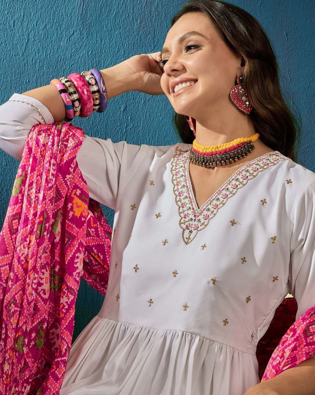 Go to the shopTop Fabric : Heavy Viscose Chanderi With Embroidery Work
