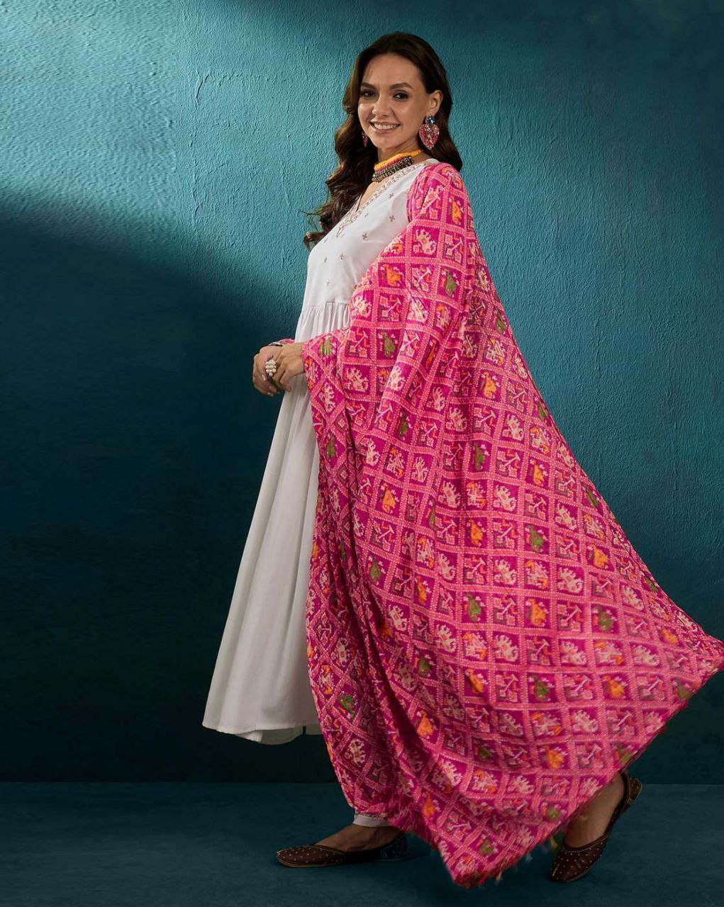 Dupatta Fabric : 2.2 Mtr Heavy Chinon Bandhni Print Duppatta