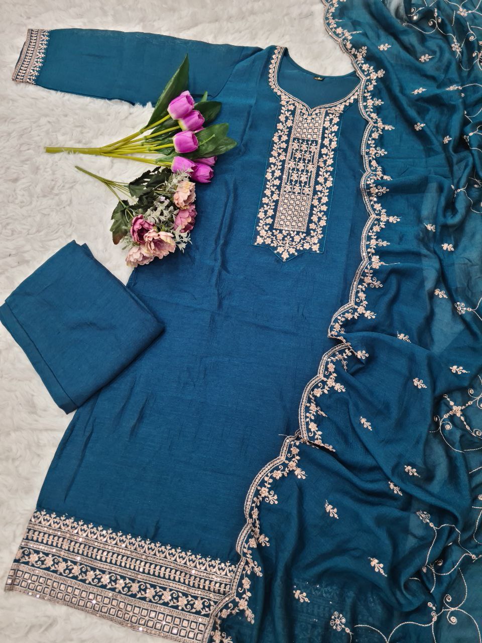 Go to the shopTop Fabric : Vichitra Silk With Sequence Coding Embroidery Work