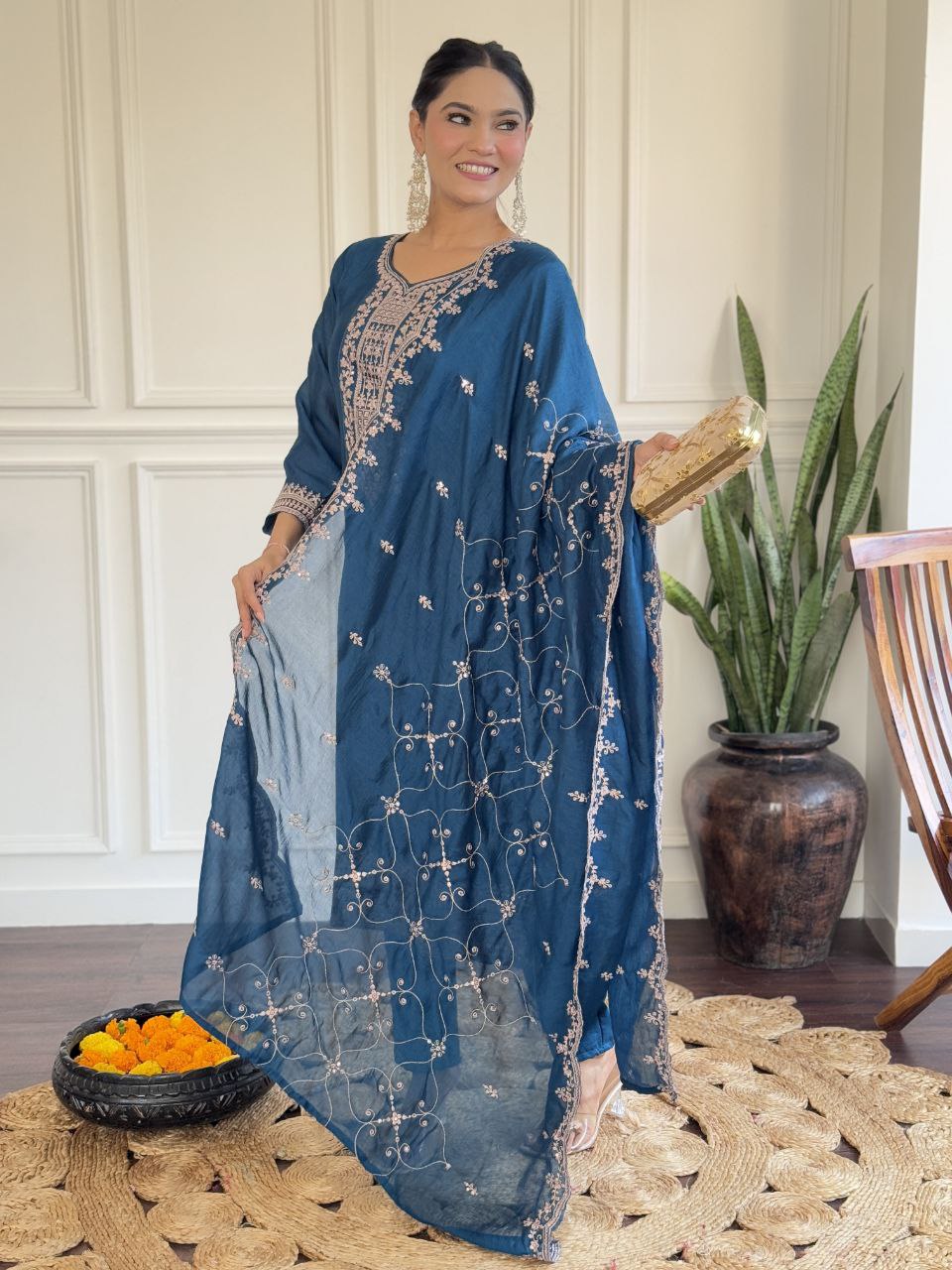 Duppata Fabric : 2.20 Meters Heavy Vichitra Silk Duppata With Sequence Coding Embroidery