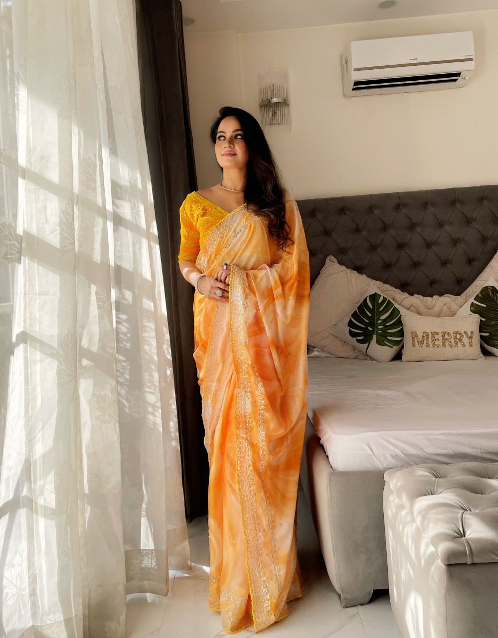 • Organza Beauty: Explore the sheer elegance of Organza floral print sarees, offering a delicate and sophisticated look.